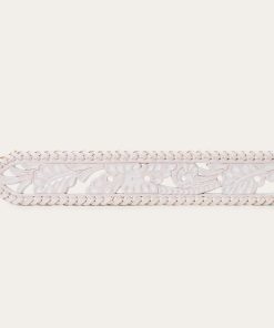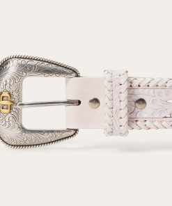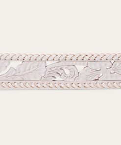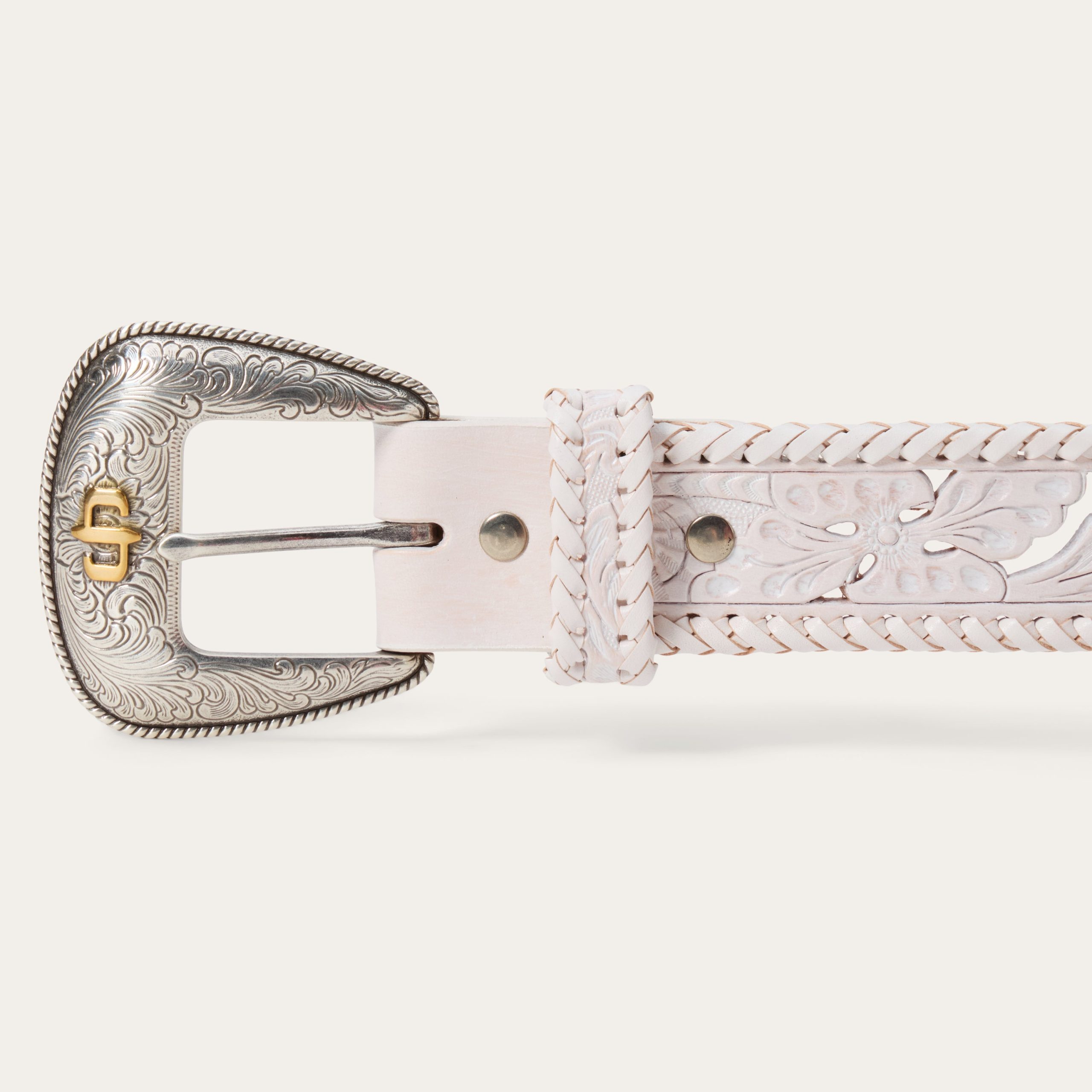 Made from top grain leather, this western-inspied belt has a 1 ½” wide white leather strap with an eye-catching tooled design, cut-out detail and laced edges. It features five holes on the point end to ensure a proper fit for all body types and is finished with a two-tone Stetson buckle. Our belts embody our legendary commitment to quality and make the perfect complement to your favorite hat and boots.