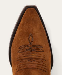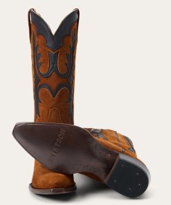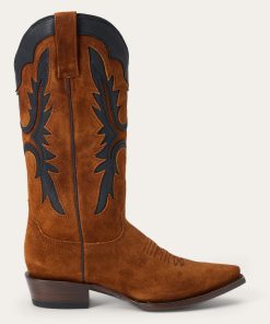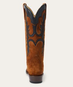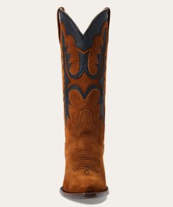 The Cheyenne Boot has a leather vamp and a 13” flame underlay shaft and features a ship toe—a statement-making style—and a stacked leather cowboy heel. Its quality construction includes single welt leather soles, brass nails and handmade lemonwood pegs that will expand and contract with any moisture the boot may encounter. Premium leather lining and a cushioned leather insole ensure heel-to-toe comfort in every step.