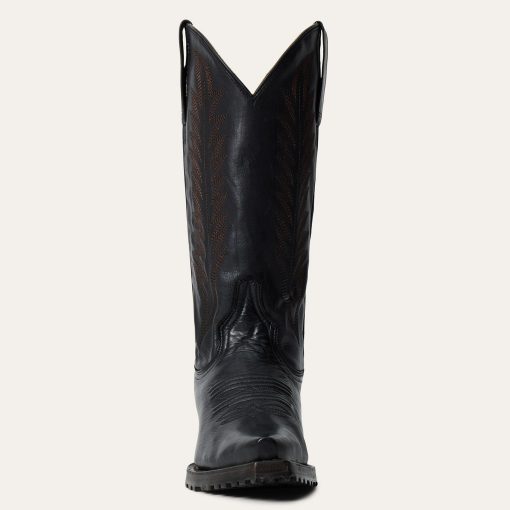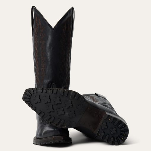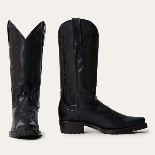A bold update to a western classic, the Frankie Boot features a calf leather vamp and 13” shaft detailed with intricate embroidery and a stylish snip toe. An all-leather lug sole, crafted with lemonwood pegs and brass nails, and a hand-stacked leather heel provide a firm foundation, while premium cowhide leather lining and a cushioned leather insole ensure all-day comfort and support.