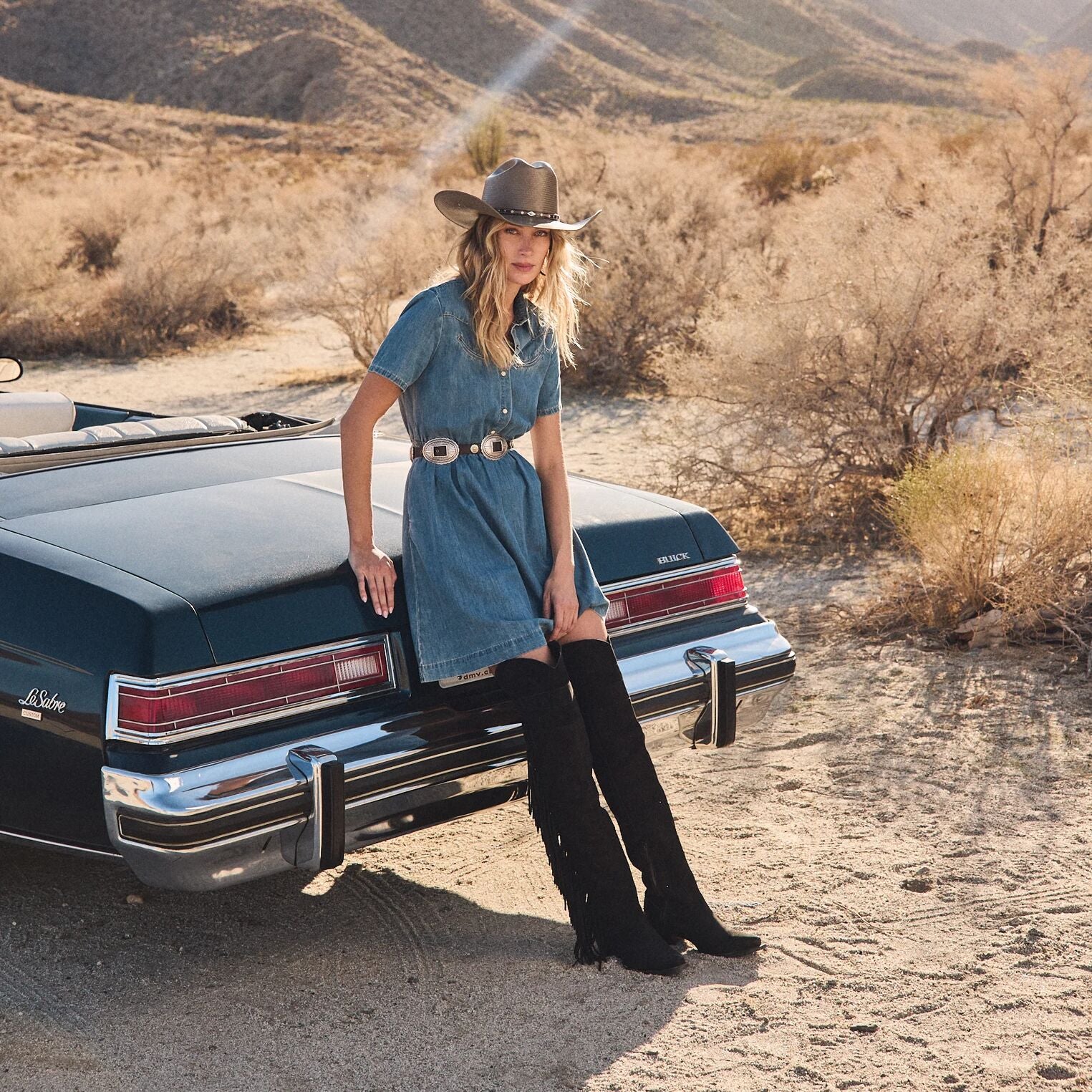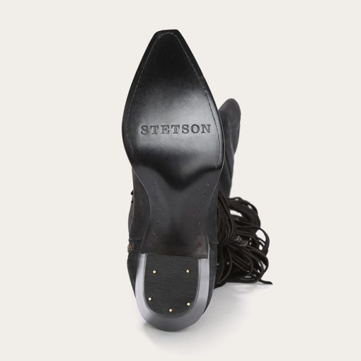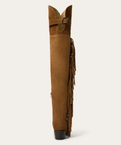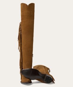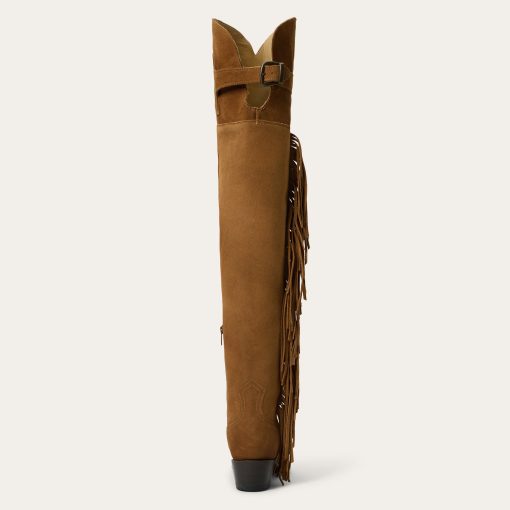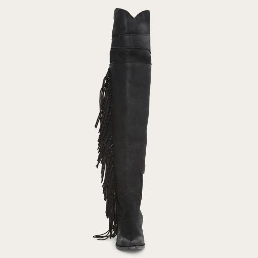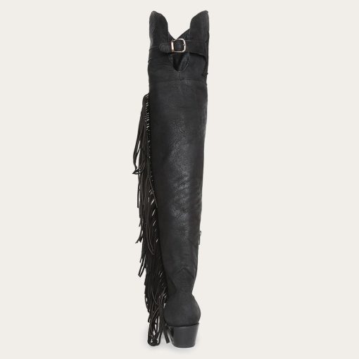 The Glam Boot features a 26” over-the-knee leather shaft with eye-catching fringe detail and a YKK ¾ inside zipper. It has a snip toe—the ultimate statement-making style. Its quality construction includes single welt leather soles with brass nails and lemonwood pegs, hand-stacked leather heel, premium leather lining and a cushioned leather insole that ensures comfort and support in every step.