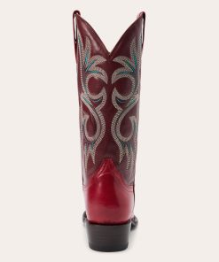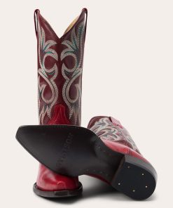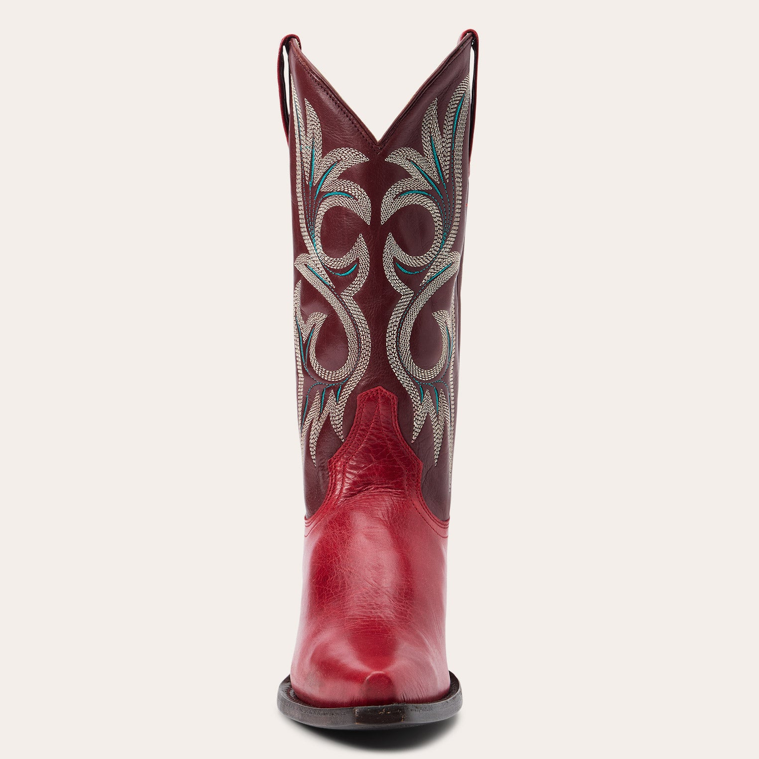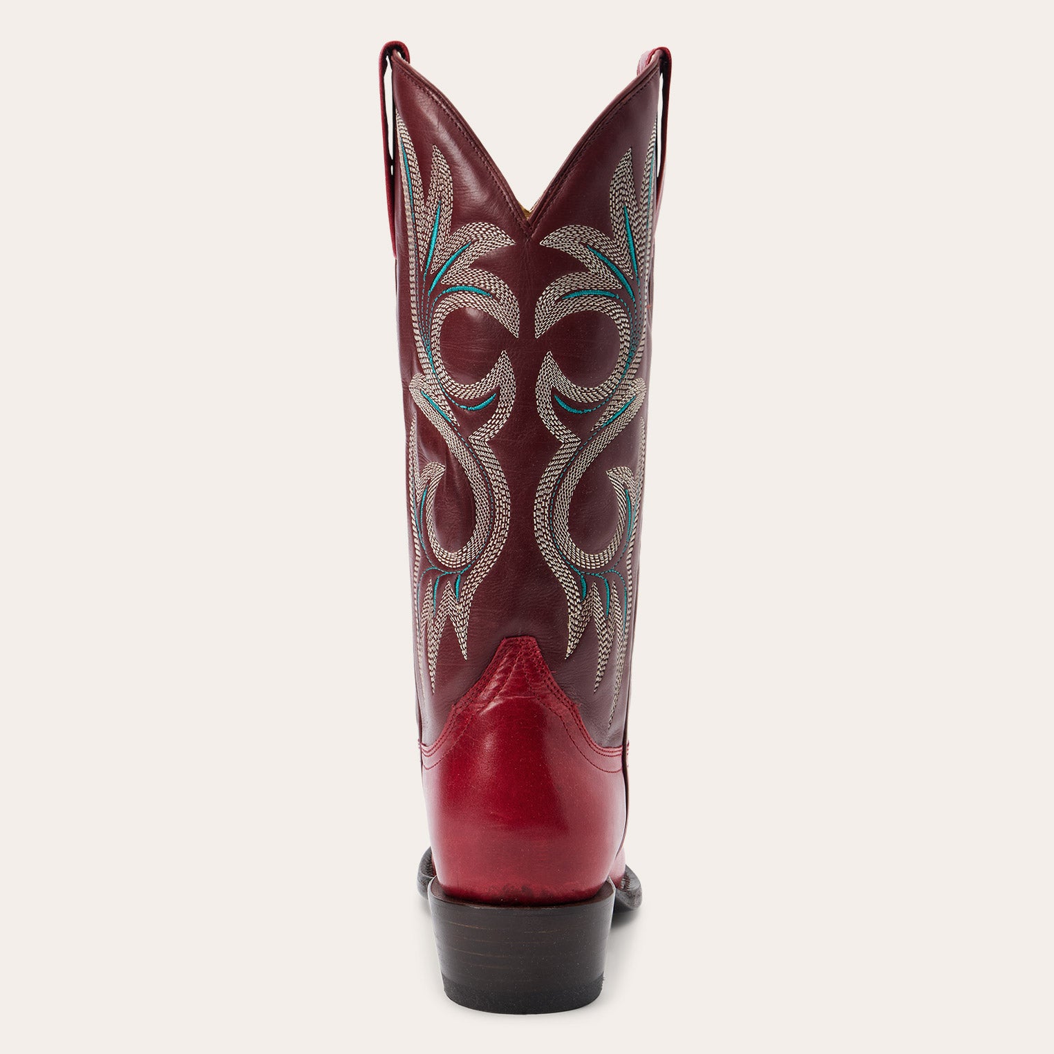 The Lauren Boot has a leather vamp and a 13” embroidered shaft and features a ship toe—a statement-making style—and a stacked leather cowboy heel. Its quality construction includes single welt leather soles, brass nails and handmade lemonwood pegs that will expand and contract with any moisture the boot may encounter. Premium leather lining and a cushioned leather insole ensure heel-to-toe comfort in every step.
