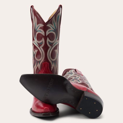 The Lauren Boot has a leather vamp and a 13” embroidered shaft and features a ship toe—a statement-making style—and a stacked leather cowboy heel. Its quality construction includes single welt leather soles, brass nails and handmade lemonwood pegs that will expand and contract with any moisture the boot may encounter. Premium leather lining and a cushioned leather insole ensure heel-to-toe comfort in every step.
